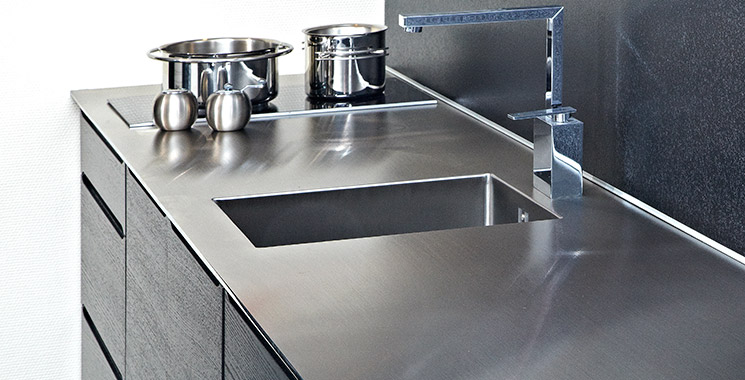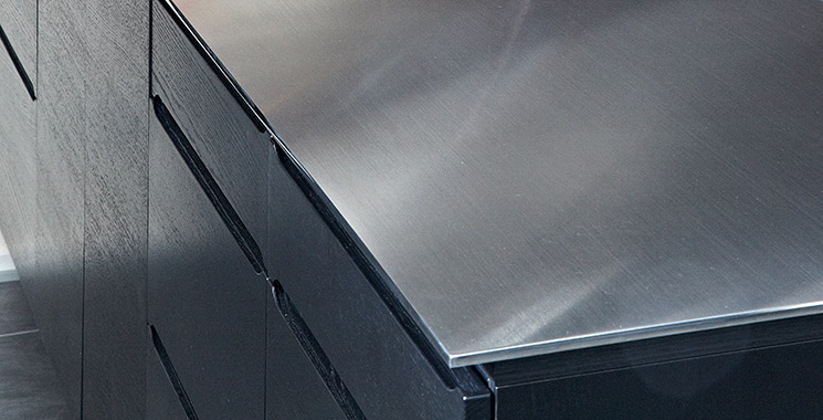 Stålbordplader er bedst kendt fra storkøkkener, men materialets stilrene look passer godt ind i mange moderne og minimalistiske privatkøkkener.